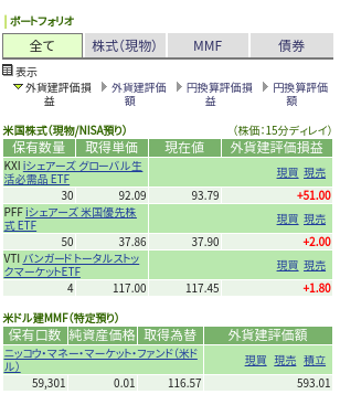 MMFはドル転のために買ったものの、結局SBI銀行の外貨積立にしたので、折を見て解約して米国株の購入資金にする予定。