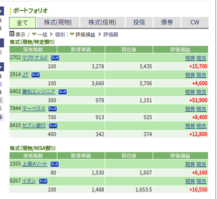 - 安値を拾ったマクドナルドとJTが今のところ含み益でいい感じ(いい判断だったという意味で)