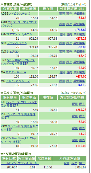 - MMFはFXでドル転して個別株を買ったあとの余りとSBI銀行でドル転したぶんを入れてる