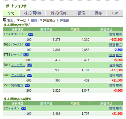 - 今回はさすがに反省を踏まえて半年くらい(=年内いっぱい)はホールドするか、+10%以上で利確するかしたい