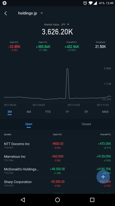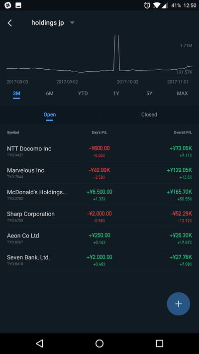 あとスマホでのポートフォリオ管理をWebullというアプリに変更しました。