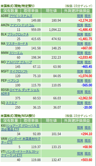 - 保有株数の増減なしだけど保有株が好調
