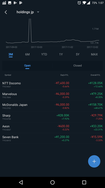 - 株価はあんまり気にしてなかったけど含み益も+12%くらいになってて順調っぽい