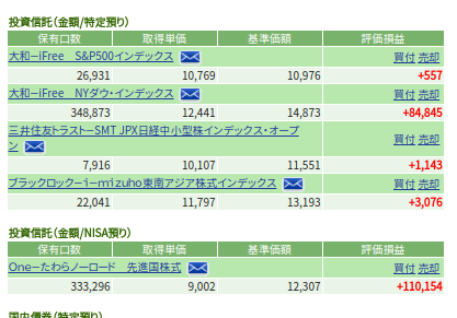 i-mizuho東南アジアは評価額3万円くらい、JPX日経中小は9000円くらいなのでまあ売る理由がない(持っとく理由もない)という感じで、iFree NYダウやS&P 500との比較用というか観賞用としてとりあえず持ったままにしておく。追加購入はiFree S&P 500のみ。NISAのたわらはNISAの期限まで持っといて売るかどうするか考える予定。