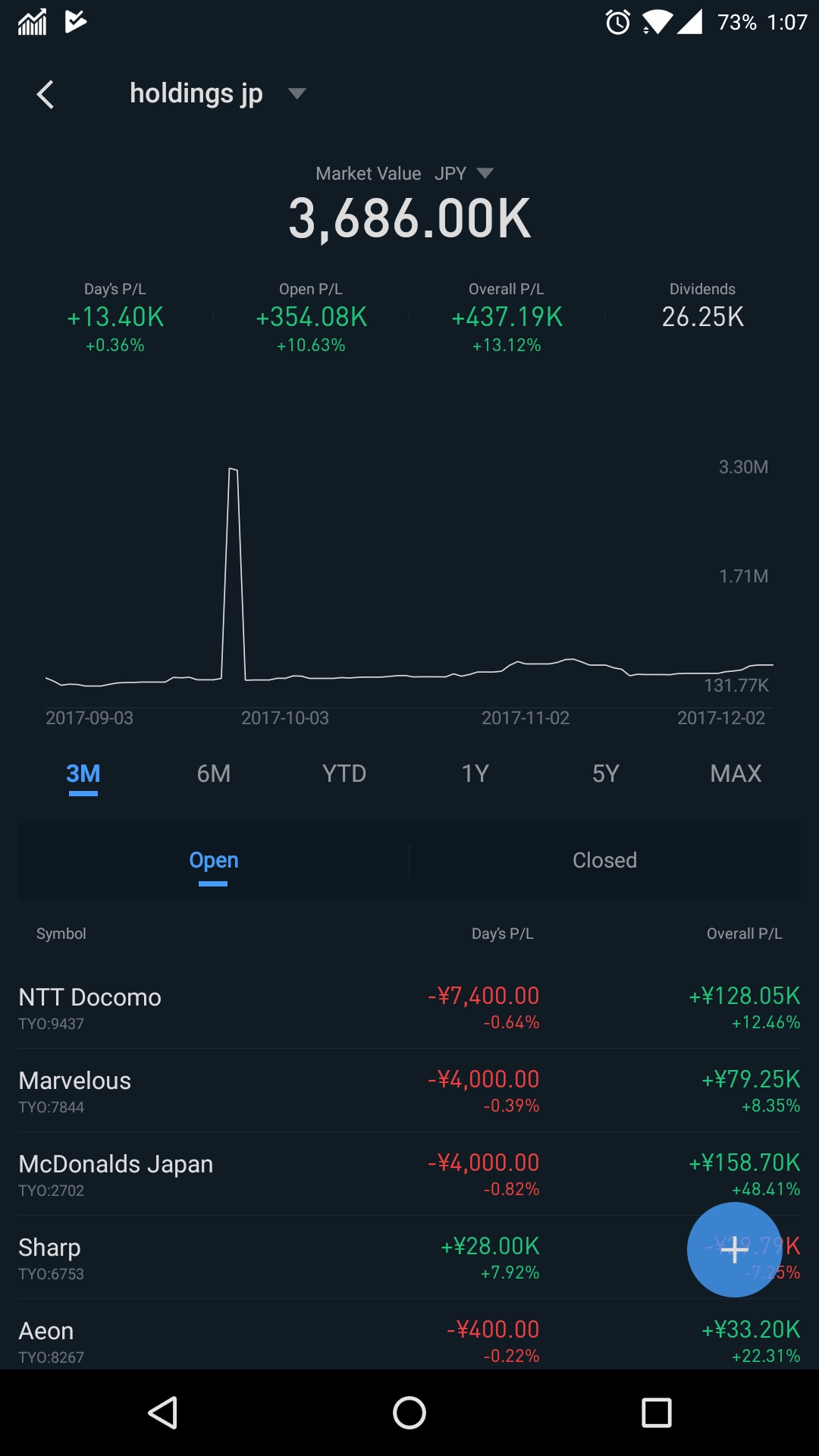 - Squareは悪くないけど市場の動きが読めないのでSQをいったん手仕舞い(+$489.30)