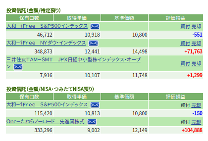 - iFree S&P 500:毎営業日1600円をつみたてNISAで購入(8,9月は4000円、それ以外の月は1600円に設定)