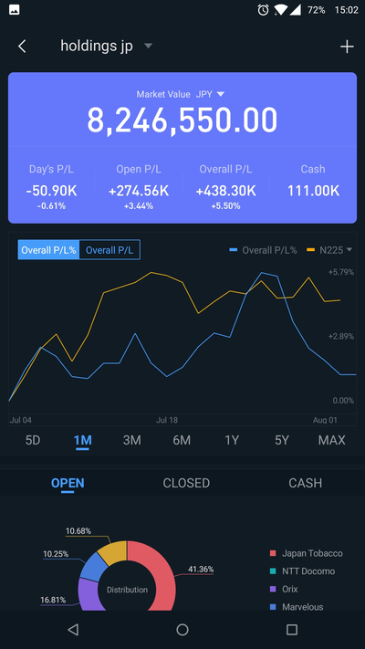 (KXIは1→2に分割されたけどアプリが追従できてなくて半値になったかのように見えてる。直る気配ないのでアプリ変えようかな…)