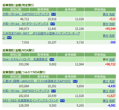 - 「eMAXIS S&P 500」と「SBI-EXE-iつみたて先進国ファンド」:毎営業日に積立上限金額を等分してつみたてNISAで購入