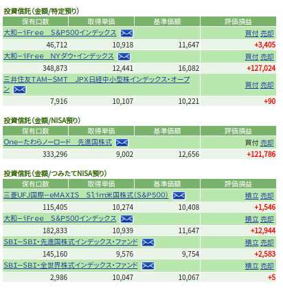 - 「eMAXIS S&P 500」と「SBI-EXE-iつみたて全世界ファンド」:毎営業日に積立上限金額を等分してつみたてNISAで購入