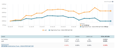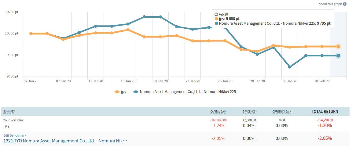 1月はほぼ一直線に上がり続けたあと25日くらいからコロナウイルスの騒ぎとともに急落、S&P 500は年初来-0.04%という横這いの結果になった。日経平均、保有日本株、保有米国株ではそれぞれ景色が違うけど。