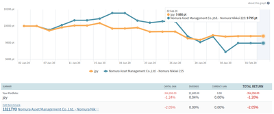 - 保有銘柄全体で見ればゆるやかな値動き(↑のオレンジの線)