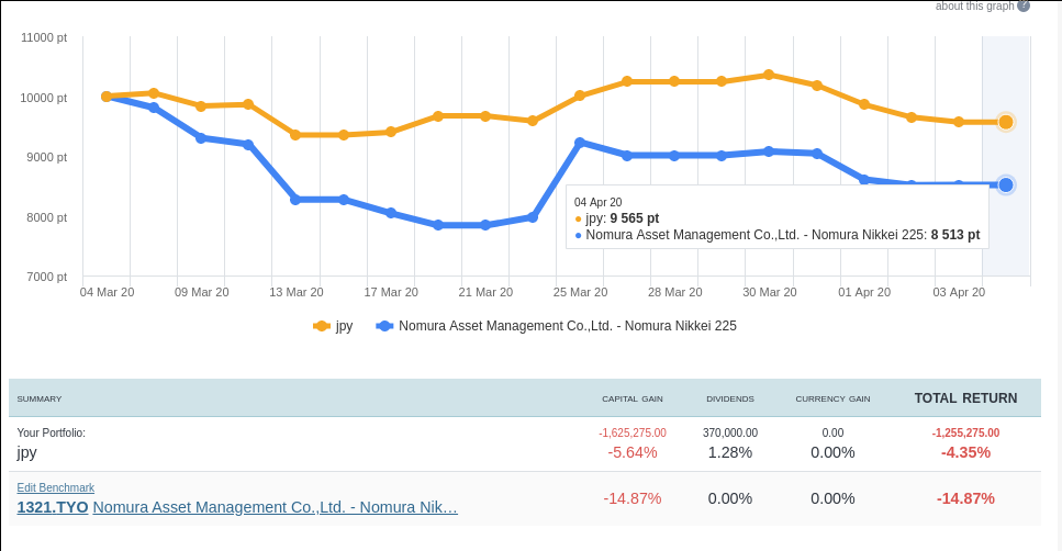- 実際売ったのが3月頭で46400円くらい、今の終値が41750円なのでまあよかった