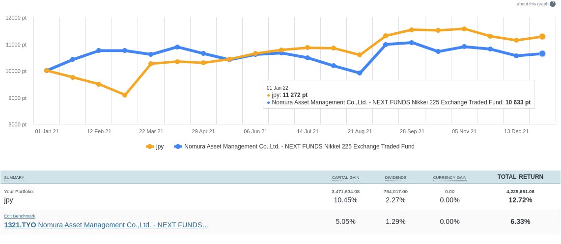 2021年の日本株 +12.72%(日経平均: +6.33%)