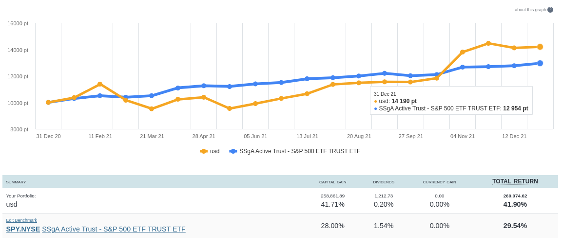 去年は+47.10%だったので微妙に減速したけどほぼ誤差。悪くない成績。いやそれよりもS&P500の線がきれいだなあ。なんだこの安定感は。